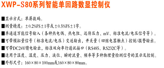 首页> 全部产品 > 温度仪表> 指针式调节仪> XWP-S80系列智能单回路数显控制仪